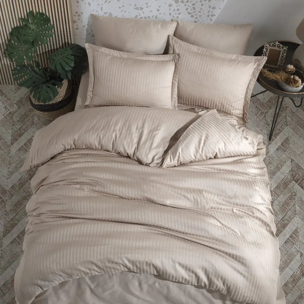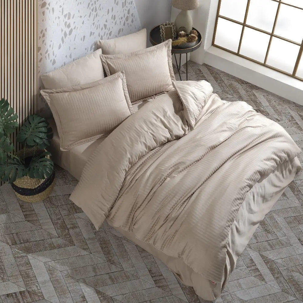 Hobby Striped Beige - Double Jacquard Satin Duvet Cover Set